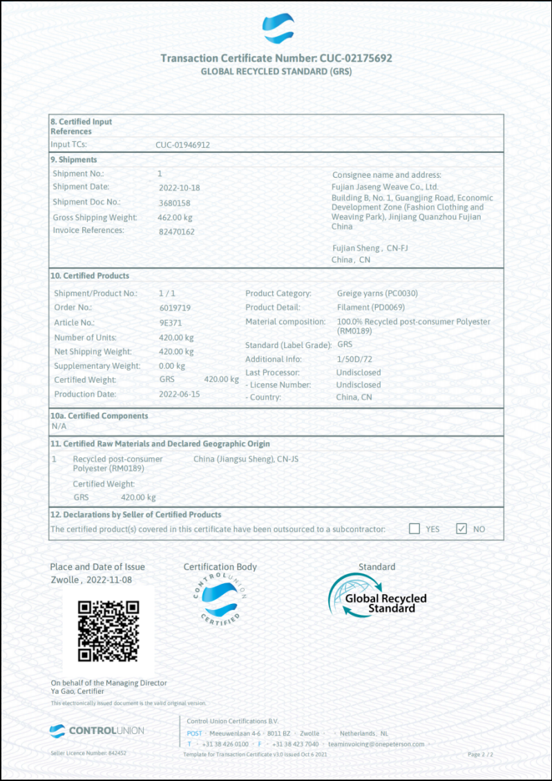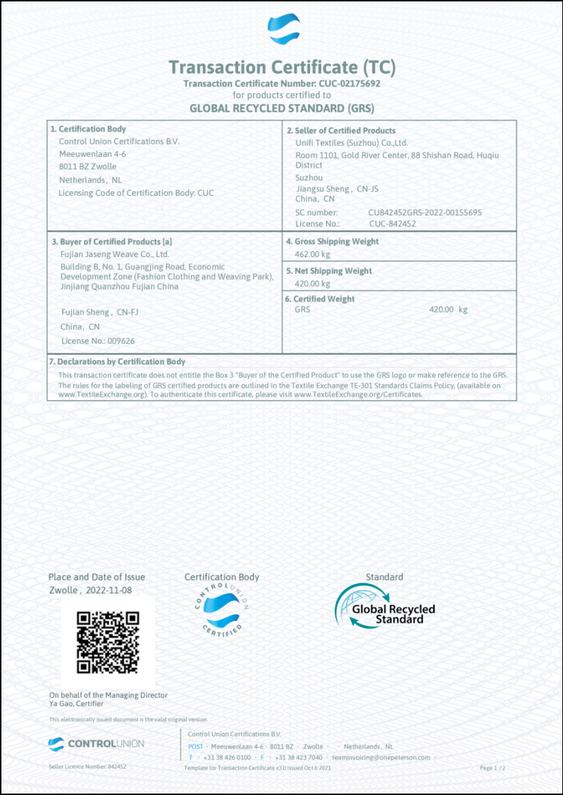 Recycle Fabric Certification: